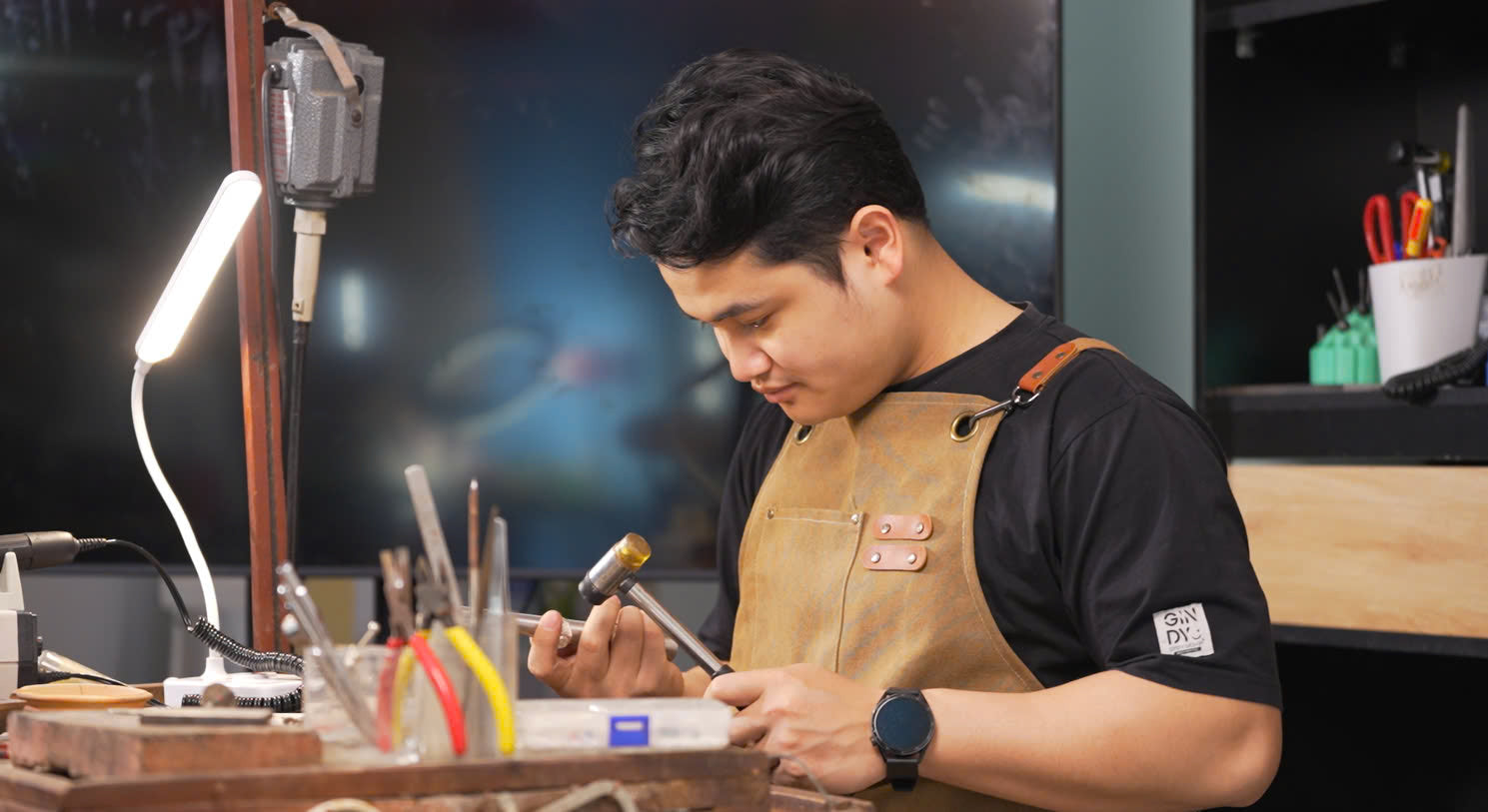 HuyK – Mê Kim Hoàn là một thợ kim hoàn với hơn 10 năm kinh nghiệm, khởi nguồn từ đam mê chế tác từng chi tiết nhỏ nhất của trang sức. HuyK không chỉ là người thợ thủ công, mà còn là một nhà thiết kế luôn tìm kiếm sự hài hòa giữa kỹ thuật truyền thống và phong cách hiện đại. Từ những bản phác tay đầu tiên đến khi hoàn thiện sản phẩm, HuyK luôn đặt cái tâm và đôi mắt nghề vào từng đường nét, từng chất liệu. Với tinh thần cầu toàn và sáng tạo không ngừng, anh đã kiến tạo nên những thiết kế mang đậm dấu ấn cá nhân – vừa có hồn, vừa mang tính ứng dụng cao.